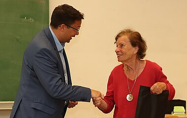 Dass ihr Vater jüdischer Herkunft war, war ihr lange Zeit nicht bewusst, da beide Eltern eigentlich Mitglieder der protestantischen Kirche waren. Als Ihr Vater, der eine Rechtanwaltskanzlei führte, auf Grund seiner jüdischen Herkunft mit einem Berufsverbot belegt wurde und die Mutter auch nicht arbeiten wurde, weil sie als „Arierin“ mit einem Juden verheiratet war, wurden die drei Kinder 1939 mit einem Kindertransort nach Schweden geschickt. Der Vater floh illegal über die Grenzen nach Südfrankreich, die Mutter konnte später zu ihren Kindern nach Schweden nachkommen. Nach dem Krieg kehrte die gesamte Familie schrittweise nach Wien zurück, wo sie wieder ganz neu anfangen musste; all ihr Hab und Gut war von den Nationalsozialisten geraubt worden. Heute ist Frau Fletzberger eine bewundernswerte Zeitzeugin, die mit ihrer sehr persönlichen Geschichte aufrütteln will: Wir müssen uns an die Vergangenheit erinnern, damit so etwas nie wieder passieren kann, lautet Ihr Credo, Zivilcourage haben, aufstehen, wenn Menschen neben uns beschimpft und ungerecht behandelt werden, in der Klasse, in den Öffis, auf der Straße. Widersprechen und handeln, nicht wegschauen. Es war ein beeindruckender Vortrag, danke Frau Mag. Fletzberger!