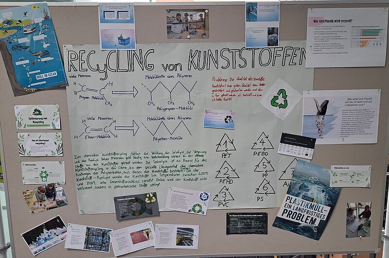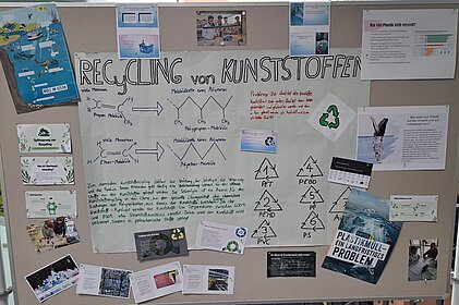 Dazu haben alle 4. Klassen mit Frau Prof. Näätsaari Projekte ausgearbeitet. Unter den Themen waren Recyclingplastik, mit Wasserstoff betriebene Autos, biologische Kosmetikprodukte sowie allgemeine Fakten über Plastik und den Problemen, die es für die Umwelt darstellt. Wir haben uns vor allem mit Recyclingplastik beschäftigt: Die Verschmutzung im Meer hat verheerende Folgen für die Tiere: Weit über eine Million Tiere kommen jedes Jahr ums Leben. Außerdem werden nur ein bisschen über 32% des Plastiks recycelt. Diese Quote sollte erhöht werden, um die Umwelt zu verbessern. Jeder von uns muss einen Beitrag für eine saubere Erde leisten. Achten wir mehr darauf, Müll zu trennen, den Plastikkonsum zu reduzieren, recycelbare Produkte oder wenn möglich erst gar kein Plastik einkaufen und den Müll nicht einfach in die Natur werfen. Probleme, die von Menschen verursacht wurden, können auch von Menschen wieder behoben werden.
