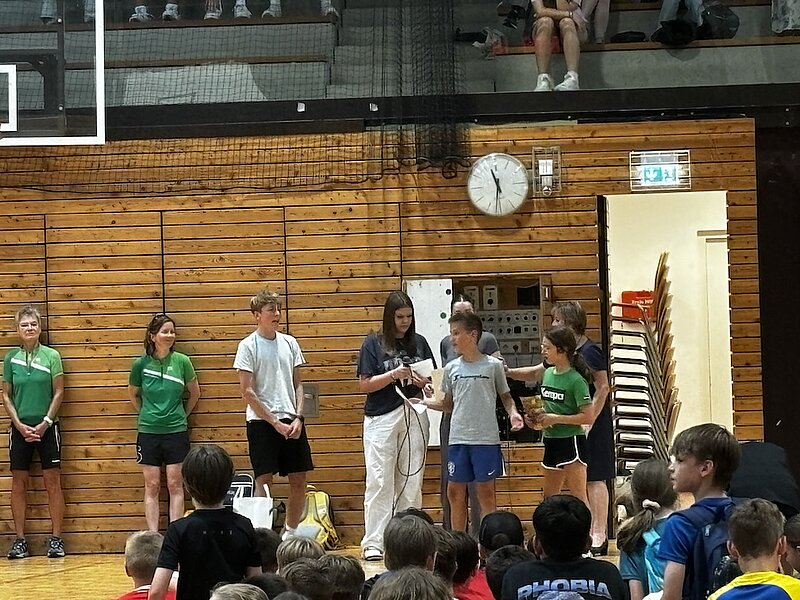 Die ersten drei Plätze belegten die 3A (dritter Platz), die 3F (zweiter Platz), und die 3E (erster Platz). Letztere hat das Sportfest mit herausragendem Erfolg gewonnen. Der Hauptpreis des diesjährigen Sportfests war ein Tag im Kletterpark im Irenental für die ganze Klasse. Platz zwei hat einen Gutschein für das Cineplexx bekommen, den sie im Laufe des nächsten Schuljahres im Klassenverband einlösen können. Platz drei hat einen Tag Minigolfspielen inklusiv Trainingsstunde mit einem Profispieler gewonnen. Bei der Siegerehrung wurden die Klassen ausgiebig gefeiert und gewürdigt.