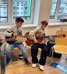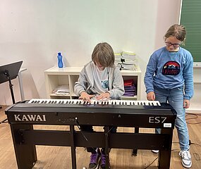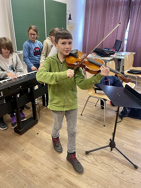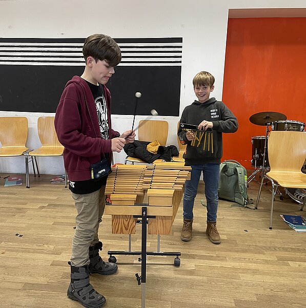 Die 2c und 2e hat über Johann Strauß und den Walzer gelernt, und den Donauwalzer mit Boomwhackers begleitet. Die 1e durfte Instrumente ausprobieren und zusammen "jammen" ... Spielfreude!