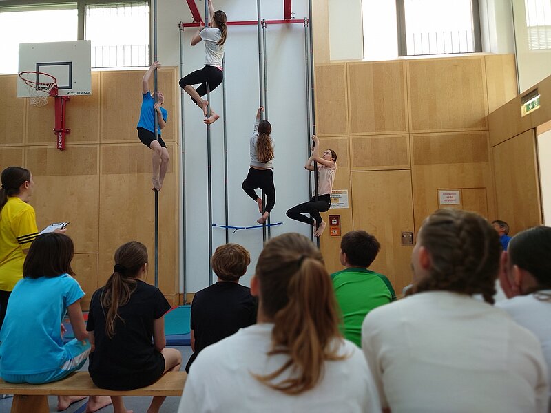 Auch vor Ort konnten die Schüler und Schülerinnen ihre Fertigkeiten beim Boden- und Gerätturnen, Balldribbling, Sprint, Weitsprung, Hindernislauf, Ausdauerlauf, Schwimmen, Klettern und Schlagball unter Beweis stellen und sich so den 4. Platz unter den Regelschulen in ganz Niederösterreich sichern.