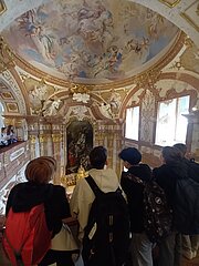 Dieses Anwesen wurde von Prinz Eugen vor 300 Jahren erworben. Nach einer einstündigen Führung durch die Prunk- und Wohnräume des Barockschlosses, durften sich die Schülerinnen und Schüler auf die Spuren des Schlossherren, Prinz Eugen von Savoyen, im Zuge einer Rätselrallye machen. Als Andenken bekamen alle eine Schloss Hof-Münze. Trotz des regnerischen Wetters war es ein erfolgreicher Lehrausgang.