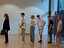 Inspiriert durch den schwungvollen Hopak der ukrainischen Schüler*innengruppe wollte sich auch das WPF Russisch im Tanz erproben. Choreographin Julia Nahorna trainierte mit uns eine Doppelstunde den russischen Matrosentanz „Яблочко“ („Äpfelchen“) und das Ergebnis kann sich sehen lassen.