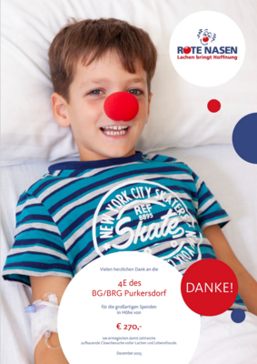 Mit großem Engagement veranstalteten die Schülerinnen und Schüler der 4E einen Kuchenverkauf, dessen Erlös den ROTEN NASEN zugutekommt. Die Aktion wurde im Rahmen eines Klassenprojekts, bei dem soziales Lernen und gelebte Solidarität im Mittelpunkt standen, durchgeführt. Dank der großen Unterstützung der Schulgemeinschaft konnte ein beeindruckender Betrag von 270 € gesammelt werden, der an die Roten Nasen übergeben wurde. ROTE NASEN ist eine künstlerische Organisation, die Menschen Lebensfreude und ein Lachen schenkt, wenn sie es am meisten brauchen. Weitere Infos finden sie unter: www.rotenasen.at