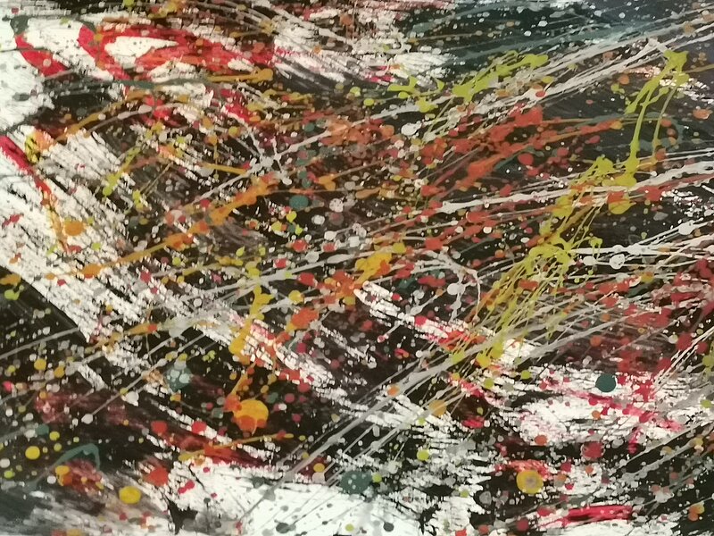 Wir haben verschiedene Techniken der abstrakten expressionistischen Kunst, wie zum Beispiel „Action Painting“ und „Dripping“ ausprobiert und gemeistert. Um der ganzen Schule unsere Werke zu zeigen und dem Schulalltag einen bunten Farblecks zu verpassen, haben wir beschlossen unsere Kunst auszustellen. Diese befinden sich im 1. OG vor dem Lehrer*innenzimmer.