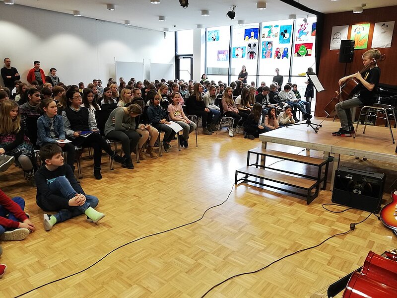 Dargeboten wurden Werke aus allen Epochen, von Wolfgang Amadeus Mozart und Antonio Vivaldi bis hin zu Benjamin Britten. Auch Eigenkompositionen waren im Programm und spannten den Bogen bis in die Popularmusik. Neben der Vielfalt an Stilen und Epochen, die in den Konzerten abgedeckt wurden, war es für viele SchülerInnen auch spannend, so viele unterschiedliche Instrumente und deren Klang zu erleben. Neben meist vertrauten Klängen wie Klavier, Flöte oder Violine konnten die ZuschauerInnen zum Beispiel auch einen Kontrabass live erleben. Abschließend bleibt nur mehr zu erwähnen, dass wir uns bei allen Mitwirkenden herzlich bedanken und wir freuen uns schon jetzt auf kommendes Jahr und die nächsten WIR für UNS Konzerte.