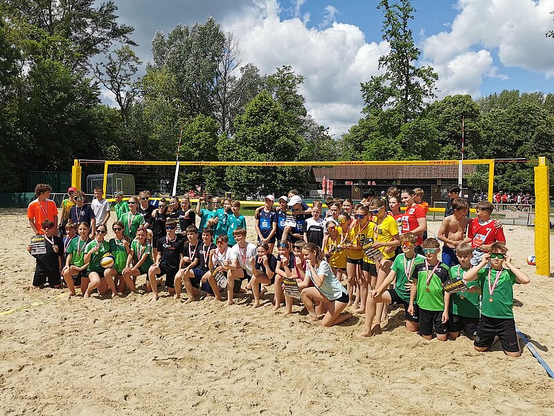 Unsere jüngsten Vollballer:innen (1.und 2.Klassen) räumen beim Schulbeachcup Landesfinale der besten 12 Schulen im Tullner Aubad ab.