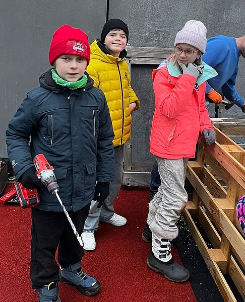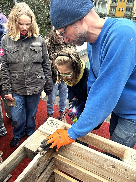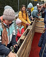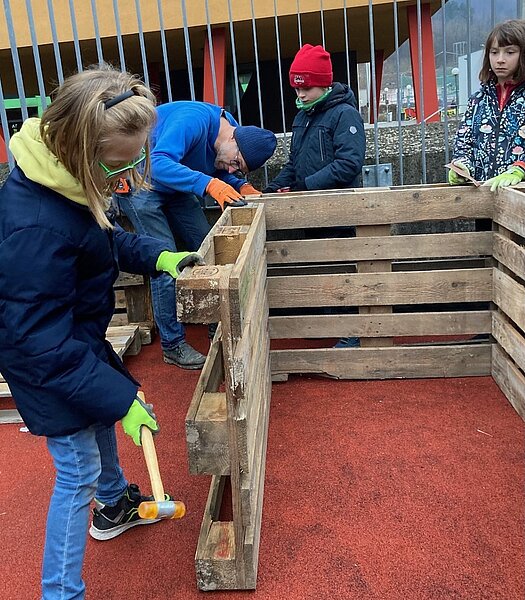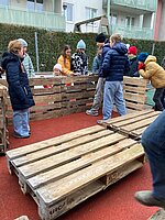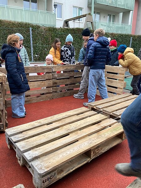 Natürlich nachhaltig: Die Hochbeete entstehen aus alten, gespendeten Paletten – vielen Dank an die Eltern! Und ein großes Dankeschön an die Fa. Sihga aus Ohlsdorf am schönen Traunsee, die uns durch die großzügige Spende der Schrauben unterstützt hat. Ein weiterer Dank gilt Bernd Höfferl, der uns bei Planung und Aufbau tatkräftig zur Seite stand und gemeinsam mit den Kindern die Paletten montierte. Die Kinder schmirgelten und schraubten fleißig. Anschließend wurden die Hochbeete eingeölt, damit sie Wind und Wetter standhalten. Öl, Noppenfolie und weiteres Material konnten wir dank des Erlöses unseres Marmeladenverkaufs finanzieren – nachhaltiges Engagement, das sich auszahlt. Ganz fertig sind wir zwar noch nicht, aber schon bald starten wir motiviert mit der Befüllung – und freuen uns darauf, die neuen Hochbeete bald in voller Pracht zu sehen!