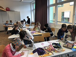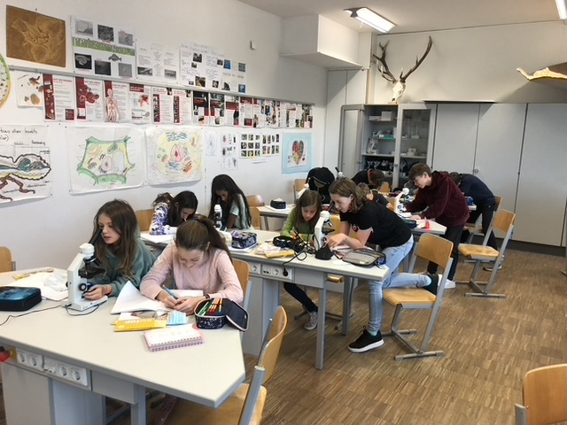 Diese großartige (und farbenfrohe) Erfahrung dürfen die 2. Klassen im Rahmen des Biologieunterrichts machen. Hier sind ein paar Eindrücke von der Arbeit mit dem Mikroskop sowie von besonders schönen Zwiebelzellen.