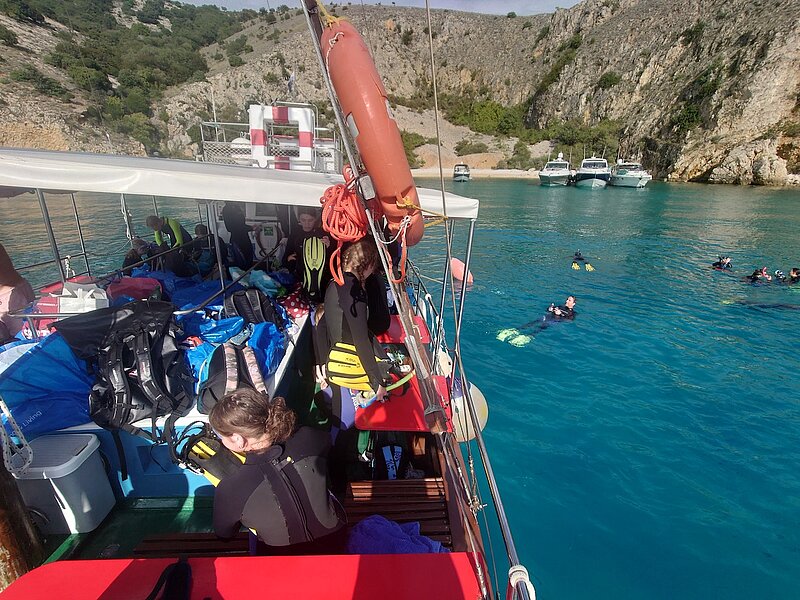Sturmböen trotzend, in der Sonne gerbend, die Schattenwand erkundend haben sie die kroatische Unterwasserwelt erforscht. Die Stimmung ist gut und bald erreichen sie wieder den sicheren Hafen Purkersdorf.