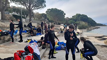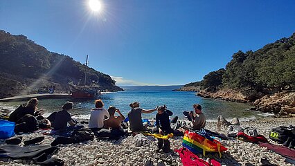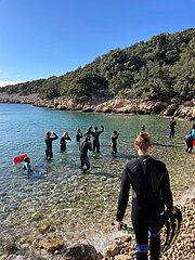 Der nächste Tag stand im Zeichen eines ganztägigen Bootsausflugs auf die (beinahe – aber das ist eine andere Geschichte) unbewohnte Insel Plavnik. Bei strahlendem Sonnenschein wurde nach einem hervorragenden Grillmenü und einer kurzen Wanderung wieder geschnorchelt, manche Mutige trauten sich im Anschluss auch noch einmal ohne Neopren ins Meer. Mit Spiel und Sport beendeten wir diesen ereignisreichen Tag.