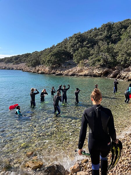 Am Montag brachen die 8C und die 8D Richtung Krk auf, um an eine beinahe vergessene Tradition anzuknüpfen – die meeresbiologischen Tage. Auf Krk angekommen startete der Tag mit einer spannenden theoretischen Einführung und dann ging es richtig los: Schnorcheln im Oktober. Immerhin mit Neopren, kalt war es trotzdem, aber dafür konnten wir verschiedene Meeresbewohner beobachten und studieren.