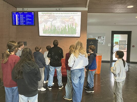 Viele Schüler*innen bleiben gespannt vor dem Bildschirm stehen, vergleichen Platzierungen und kommentieren eifrig den Zwischenstand. Für uns vom Umweltteam ist allein die Tatsache, dass so viel über Mülltrennung gesprochen wird, bereits ein großer Erfolg. Wir freuen uns darauf, in den kommenden Tagen die letzten Punkte einzutragen und schon bald den Sieger oder die Siegerklasse ehren zu dürfen.