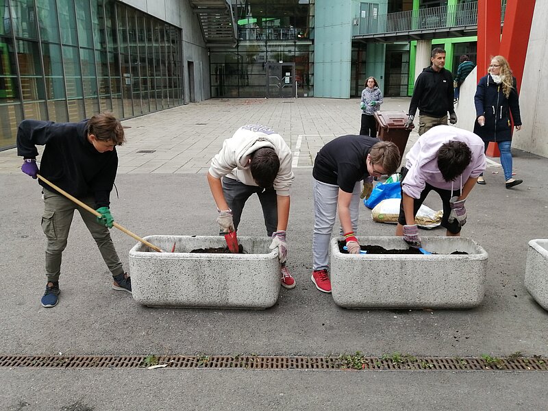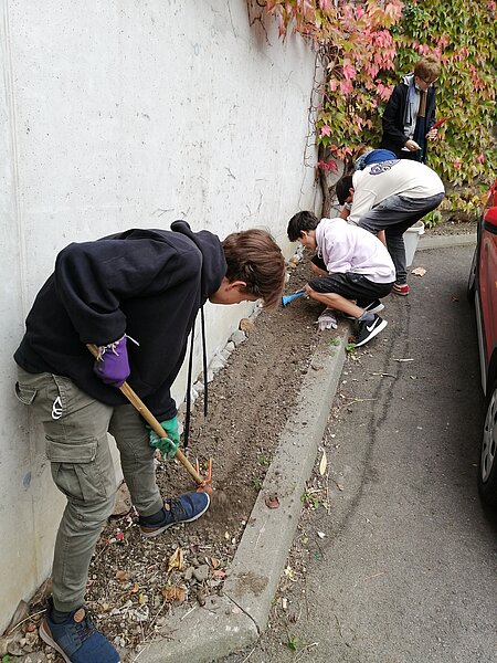 Bereits im Oktober haben die Schüler:innen der 4b bei den beiden Grünstreifen der Schulhofeinfahrt und den Steintrögen nicht nur den Müll und das Unkraut beseitigt, sondern auch gleich einige Blumenzwiebel gesetzt. Wir sind gespannt, welche Pflanzenpracht uns im Frühjahr erwartet.