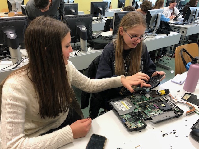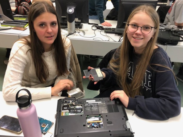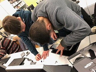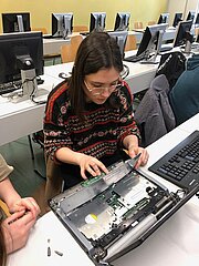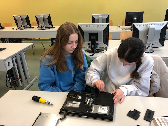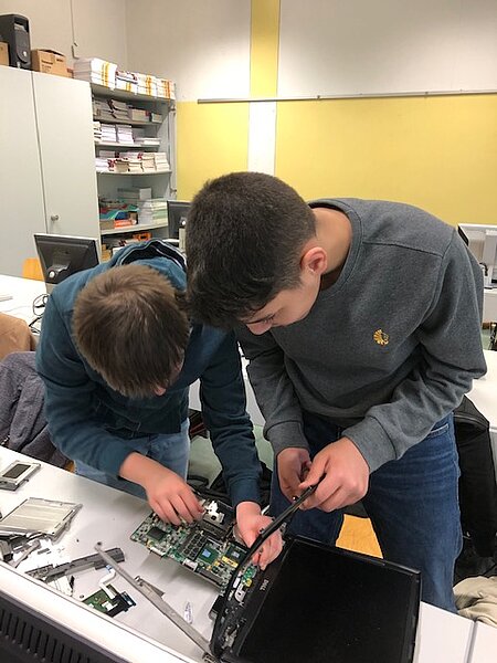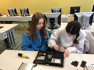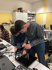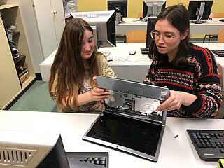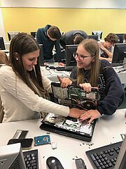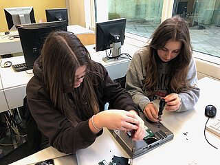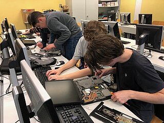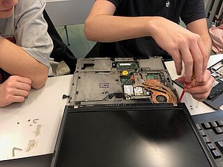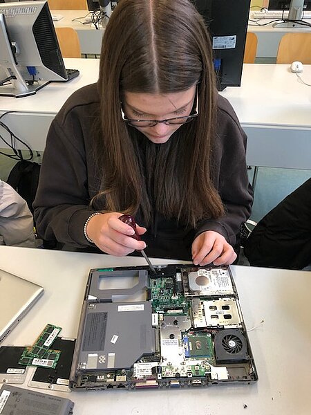 Viel spannender hingegen ist es für die Schülerinnen und Schüler, wenn sie einen Computer selbst auseinandernehmen können, als wenn sie die einzelnen Hardware-Teile nur auf Papier oder am Bildschirm sehen. Um aber auch bei der Lebensrealität der Schülerinnen und Schüler zu bleiben, haben wir nicht Desktop-PCs, sondern Laptops auseinandergenommen. Die Schülerinnen und Schüler waren mit Eifer dabei, die Notebooks zu zerlegen und es hat ihnen richtig Spaß gemacht.