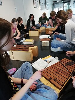 Die Melodie der Hymne der EU stammt aus der Neunten Sinfonie, die Ludwig van Beethoven komponierte. Vor genau 200 Jahren wurde die Sinfonie in Wien uraufgeführt. Mit Hilfe von Herrn Professor Faimann spielten wir die Hymne 6-stimmig auf Xylophon-Stäben.