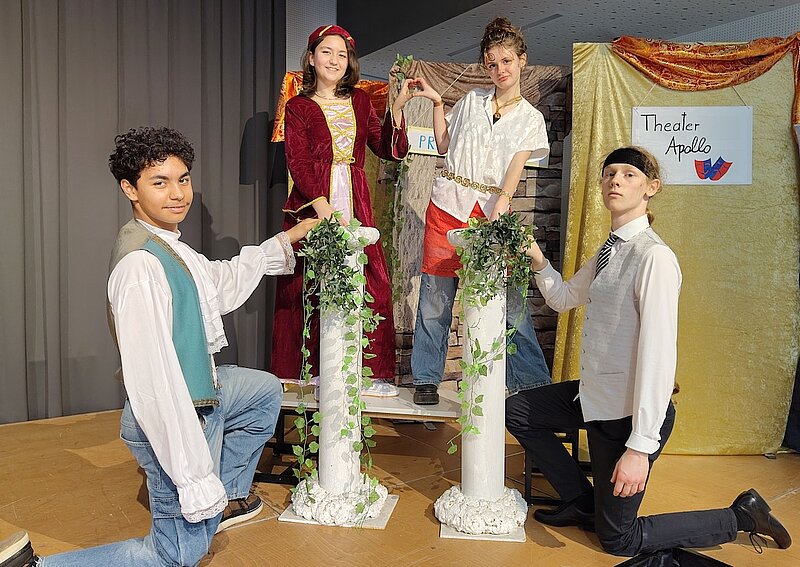 Spannung kam auf, als der Theaterdirektor nicht zu finden war und „Möchte-gern-Detektiv*innen“ mit kriminalistischem Spürsinn die Theaterproben zu „Romeo und Julia“ störten. Zu guter Letzt entpuppte sich der vermeintliche Mord am Direktor als Urlaubsreise und das Publikum staunte am Ende nicht schlecht über den Gastauftritt unseres Herrn Direktors Ruiss!